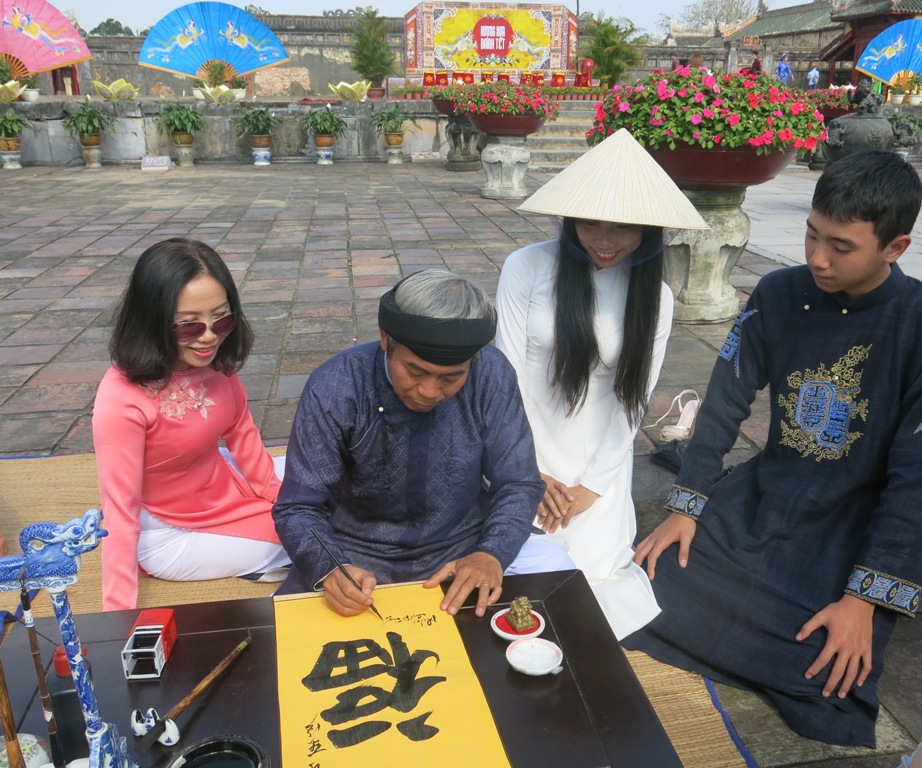 Trong không khí rộn ràng của các điệu chầu văn, làn điệu ca Huế, ca khúc về Huế và mùa xuân, âm hưởng tết cung đình được tái hiện qua các trò chơi cung đình: đổ xăm hường, bài vụ, đầu hồ, trình diễn thư pháp và tặng chữ…