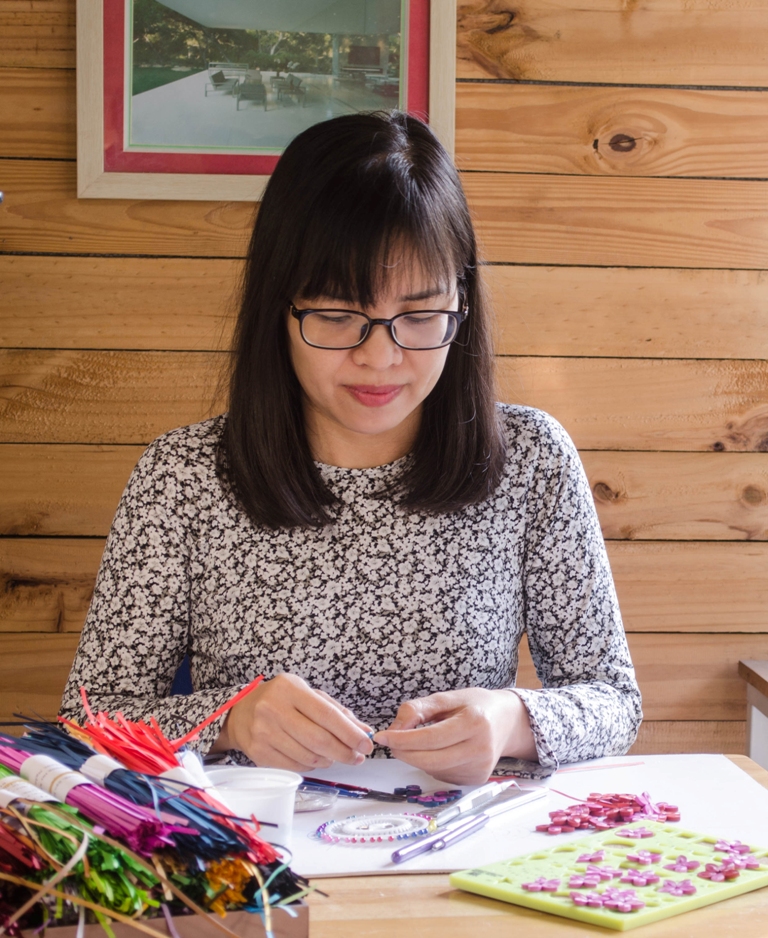 Hoàng Thị Khánh Đông sáng tạo cùng giấy xoắn.