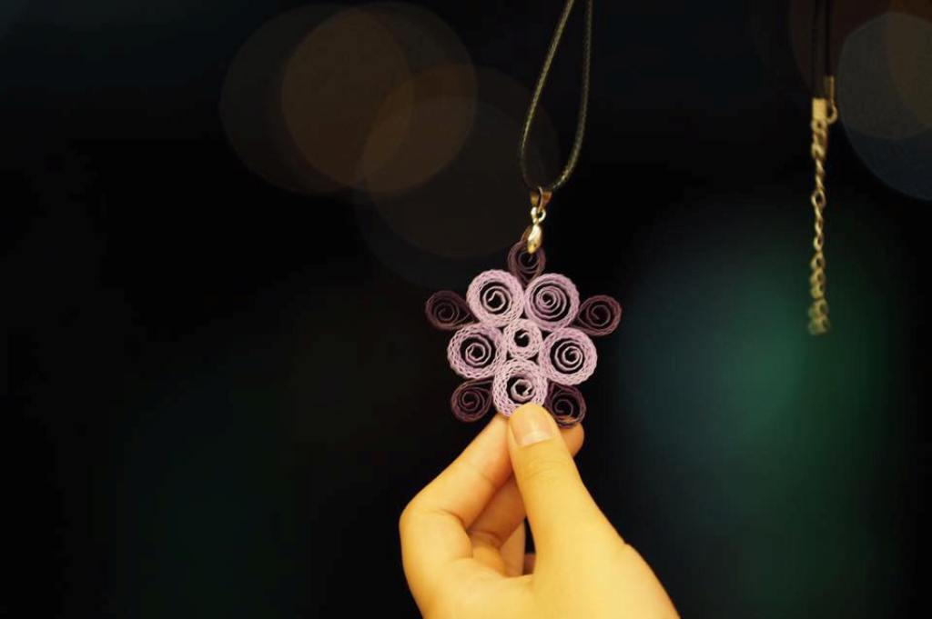 Nghe chừng nàng “Hoàng Thị” ni cũng cá tính phết! Khách đặt tranh nhưng thấy sản phẩm làm không ưng ý, ngắm không đạt là báo hủy đơn. Tác phẩm này vẫn nằm trên gác căn nhà ở phố Tôn Thất Tùng, quận Đống Đa (Hà Nội) như một kỷ niệm về tranh giấy xoắn. Sản phẩm của nàng “tone” xanh lam và tím vì một phần con người nàng là Huế... Bấy nhiêu chuyện qua tai khiến tôi càng tò mò hơn về người làm ra những món trang sức từ sợi giấy độc đáo này.