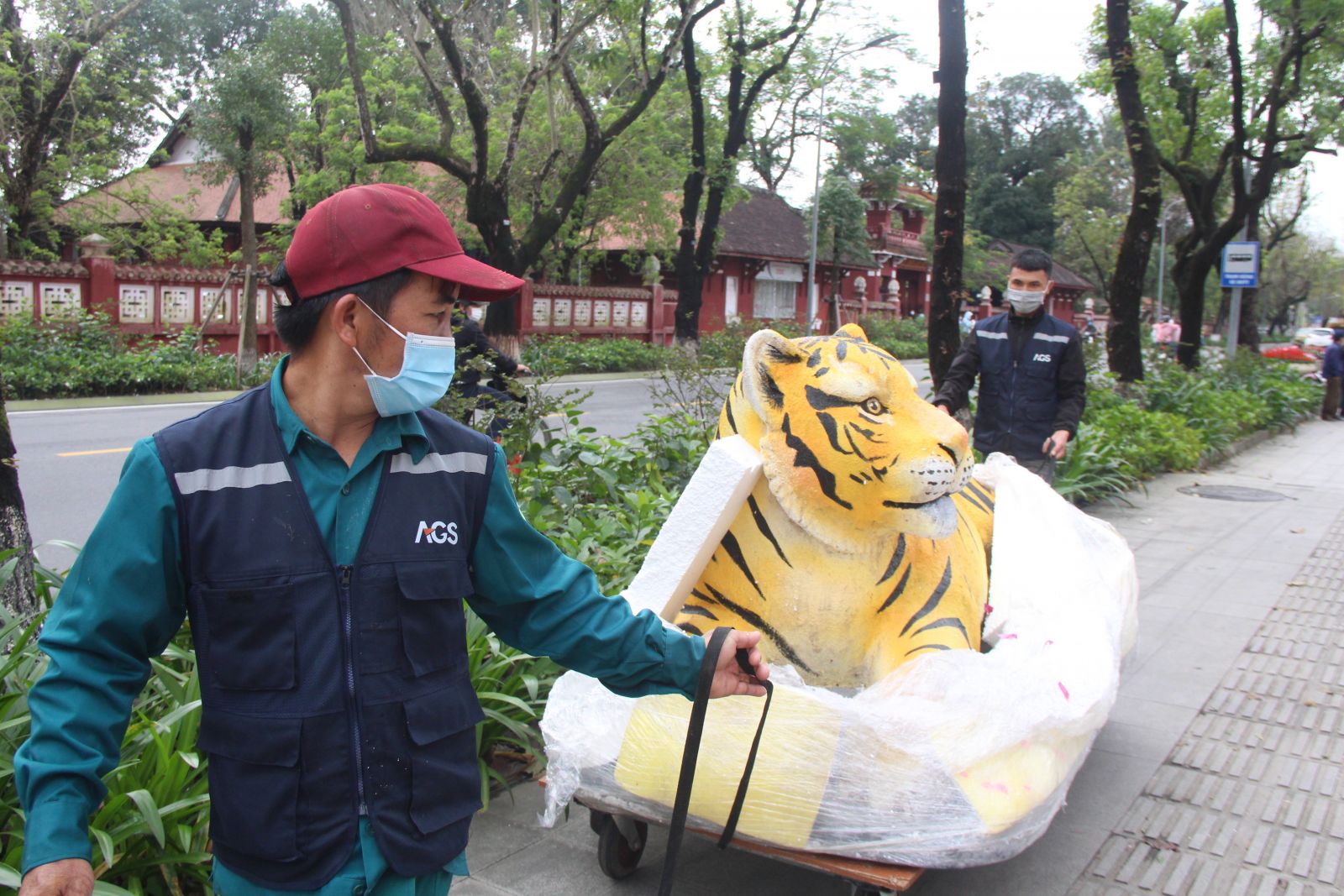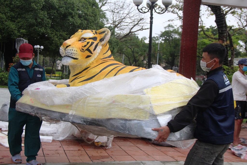 Biểu tượng của năm Dần được trang trí ở các khu vực công cộng sáng 20/1 (18 tháng Chạp)