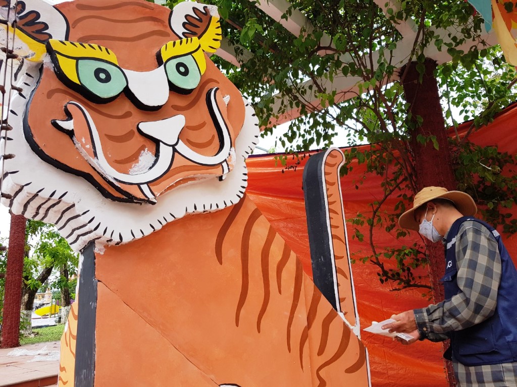Một vài địa điểm, hình ảnh chú cọp được các nghệ nhân trang trí ngay tại chỗ