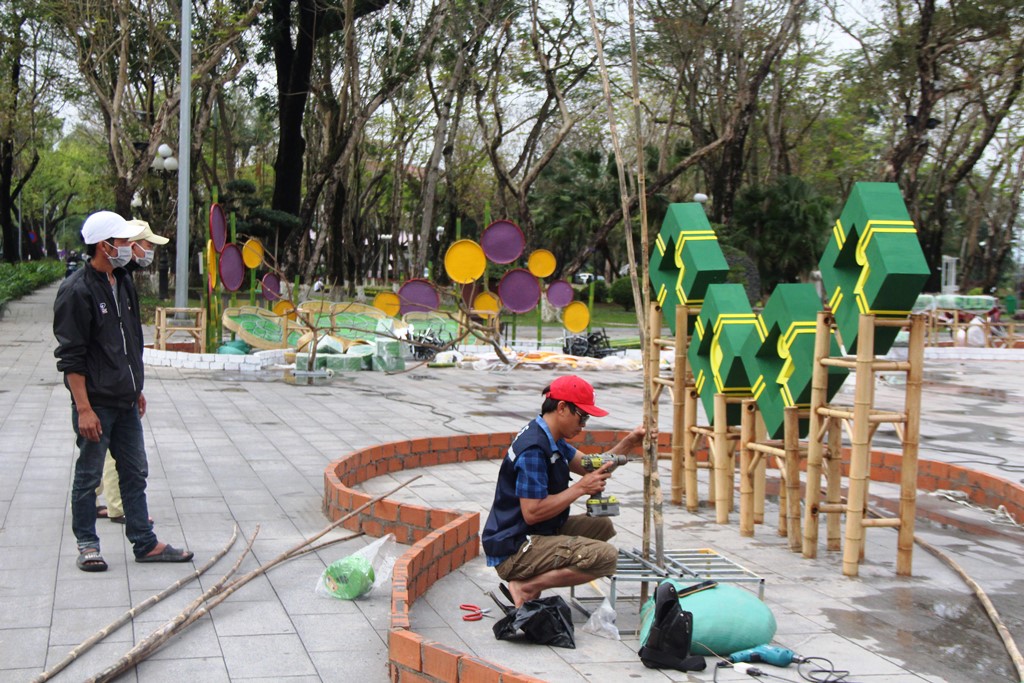 Ông Lê Như Chinh – Giám đốc Trung tâm Công viên cây xanh Huế cho biết, việc thiết kế, trang trí không gian tết được thực hiện nhiều nơi trên toàn TP. Huế. Điểm chính là trục đường Lê Lợi và dọc bờ sông Hương. Những ngày qua, đơn vị đã huy động đông đảo công nhân làm việc liên tục, bất kể nắng mưa. Dự kiến, công việc sẽ hoàn thành trong một vài ngày tới để chính thức mở cửa phục vụ người dân.