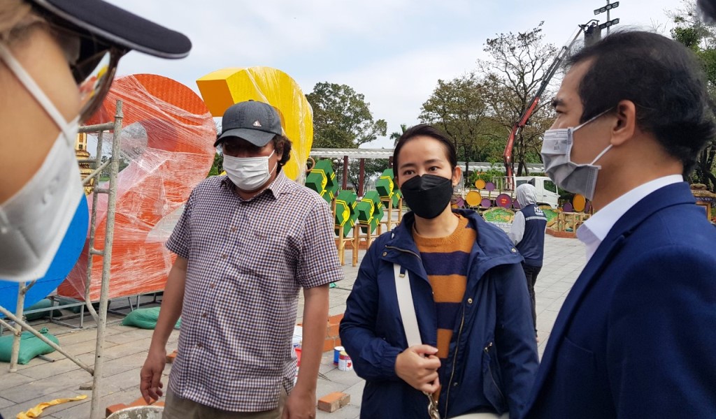 Trong sáng 20/1, ông Võ Lê Nhật - Chủ tịch UBND TP. Huế đã thị sát, chỉ đạo việc trang trí không gian tết ở khu vực công viên trước Trường THPT Quốc Học. Ông Nhật đề nghị các đơn vị tham gia trang trí, thiết kế đẩy nhanh tiến độ, đảm bảo có không gian tết ấn tượng để mọi người có thể du xuân.