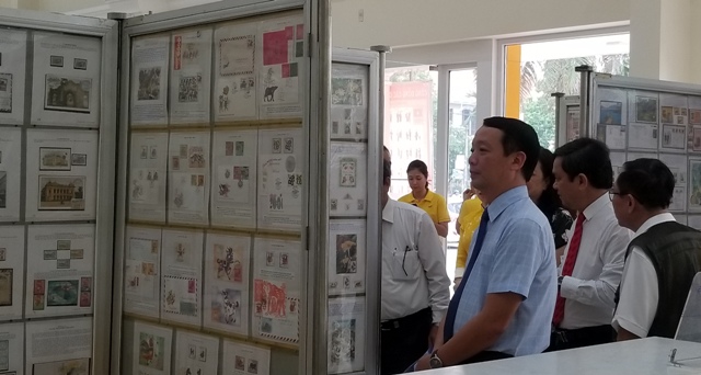 Phó Chủ tịch UBND tỉnh Phan Thiên Định và những người yêu tem tham quan không gian trưng bày