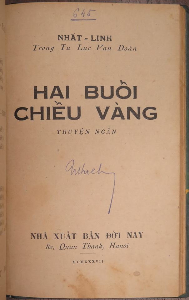Hai buổi chiều vàng của Nhất Linh, NXB Đời Nay ấn hành năm 1937
