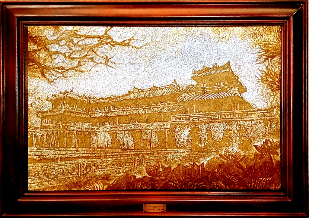 Nguyễn Phước Nhật, họa sĩ trẻ đảm trách khâu thiết kế cho biết rất áp lực khi bắt tay thực hiện món quà đặc biệt như thế. “Món quà này phải đại diện cho giá trị văn hóa, nghệ thuật của xứ Huế gửi tặng đến hai vị quốc khách nên chúng tôi phải thực hiện rất tỉ mỉ, cẩn trọng trong từng chi tiết, phải làm sao bức tranh phô diễn được kỹ thuật, đạt giá trị mỹ thuật cao nhất”, Nhật nhớ lại.