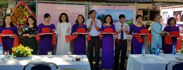 Đại diện lãnh đạo TP. Huế, Ban quản lý chợ Đông Ba cắt băng khai mạc không gian trưng bày