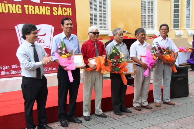 Ông Nguyễn Văn Thành, Chủ tịch UBND TP. Huế trao giấy chứng nhận cho các nhà nghiên cứu, nhà giáo tại cuộc trưng bày