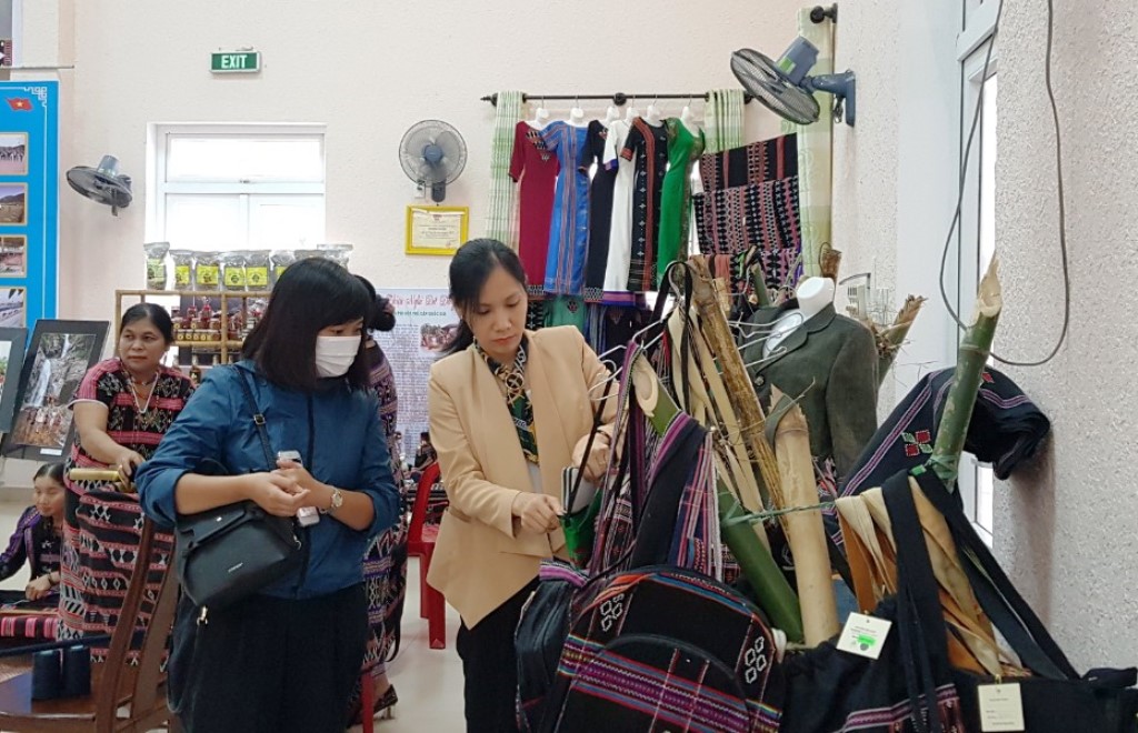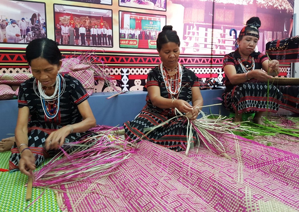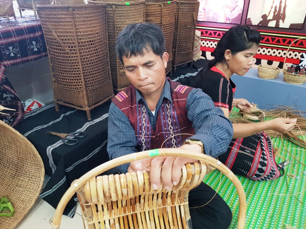 Tại đây các đồng bào dân tộc thiểu số trên địa bàn tỉnh đã trưng bày và trình diễn, chế tác các sản phẩm thủ công truyền thống như dệt zèng, đan lát, đan chiếu, làm ghế mây… Ngoài ra, còn có không gian trưng bày triển lãm về chủ đề “Người đi tìm hình của nước”, trưng bày trải nghiệm không gian tranh làng Sình và Đông Hồ.