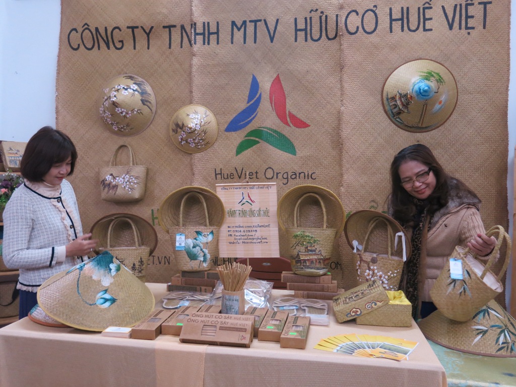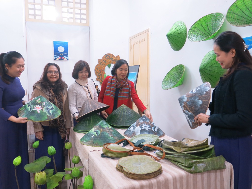 Trưng bày nón sen, một sản phẩm mới của Huế