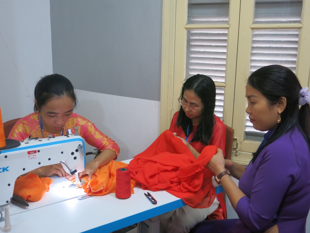 Một số hình ảnh Thừa Thiên Huế Online ghi lại tại không gian trưng bày và thao diễn nghề may áo dài: