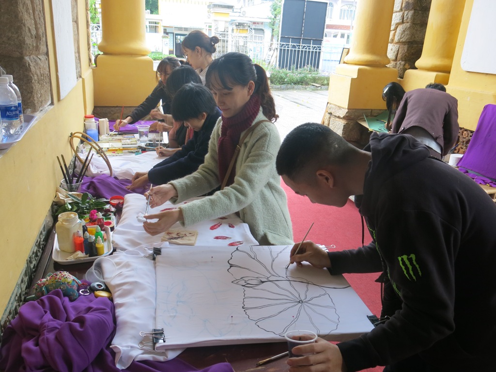 Sinh viên mỹ thuật thi vẽ trang trí cho áo dài truyền thống