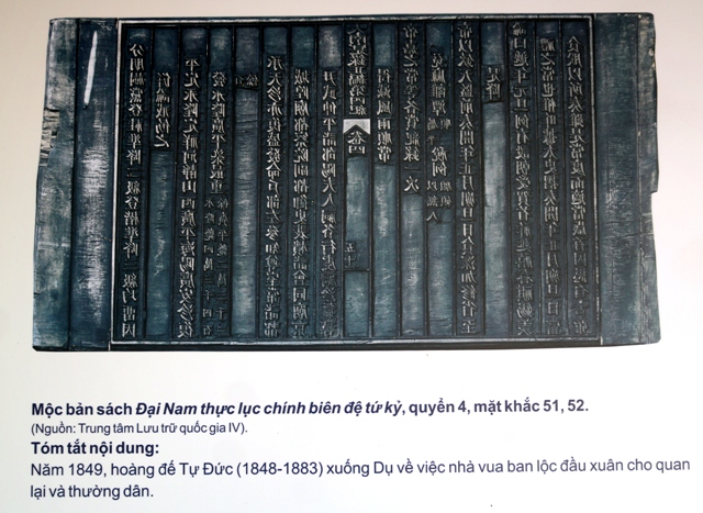 Cận cảnh một mặt khắc thông tin việc hoàng đế Tự Đức ban lộc xuân cho quan lại và thường dân