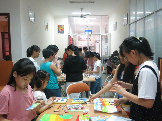Ngoài đọc sách, các em học sinh còn được trải nghiệm làm phim hoạt hình bằng đất sét, vẽ tranh