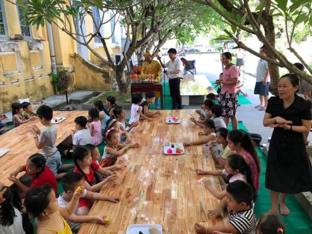 Với sự hướng dẫn của nghệ nhân Trần Đại Nghĩa, các em thiếu nhi là học viên của Nhà Thiếu nhi Huế được tham gia nhào bột, nặn hình, tô màu thành những con tò he nhiều màu sắc. Đây là hoạt động có ý nghĩa trong dịp nghỉ hè, giúp các em hiểu được sự tỉ mỉ, khéo tay, sáng tạo của nghệ nhân và học hỏi thao tác nặn các con vật cơ bản.