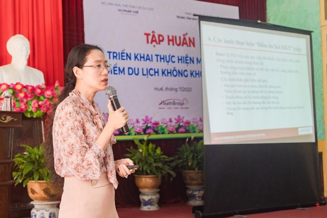 Chương trình tập huấn triển khai thực hiện mô hình điểm du lịch không khói thuốc vừa được Trung tâm Bảo tồn Di tích Cố đô Huế phối hợp với Vụ Pháp chế thuộc Bộ Văn hóa, Thể thao và Du lịch tổ chức ngày 22/7 là hoạt động khởi động việc triển khai mô hình này.