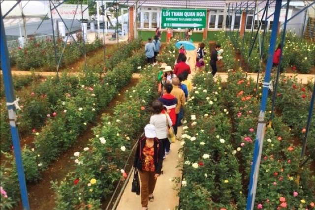 Du khách tham quan một cơ sở trồng hoa ở Đà Lạt