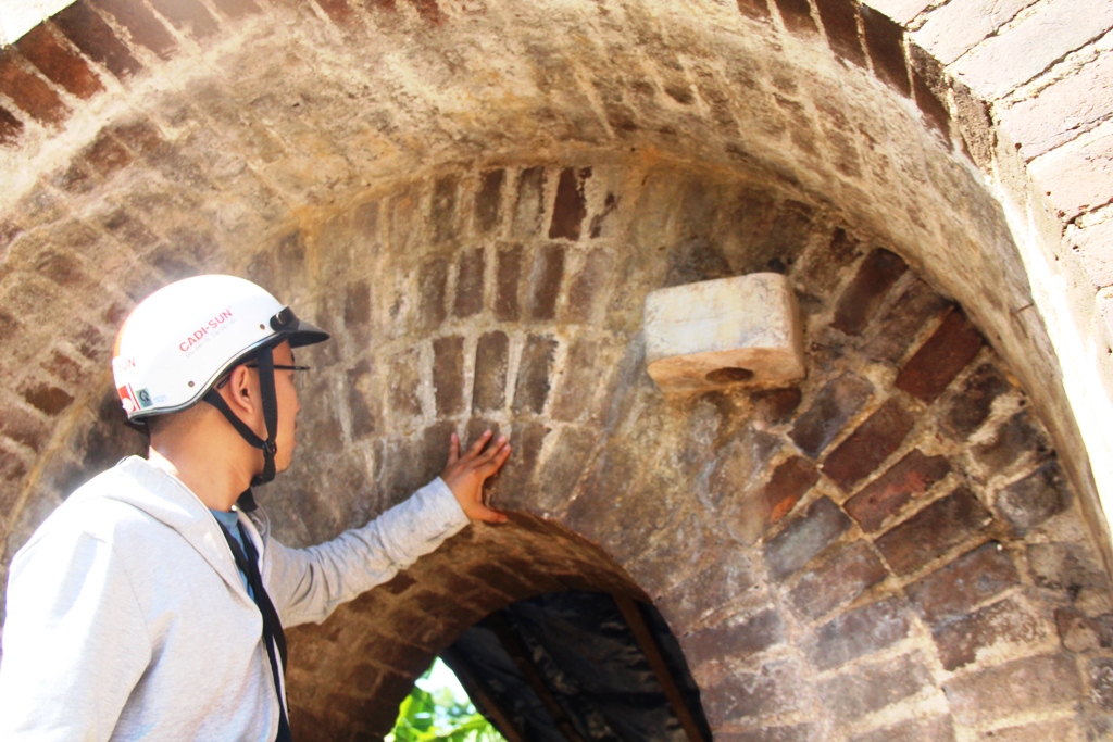 Chiếc cổng đầu tiên được phát hiện, cạnh đó nhiều lớp gạch có dấu hiệu nứt toác