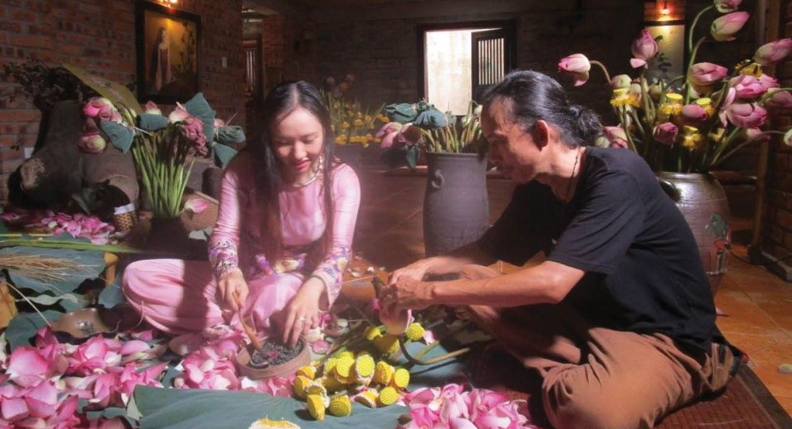 Trà kết hợp với sen tạo nên sản phẩm trà sen đặc trưng tại Huế