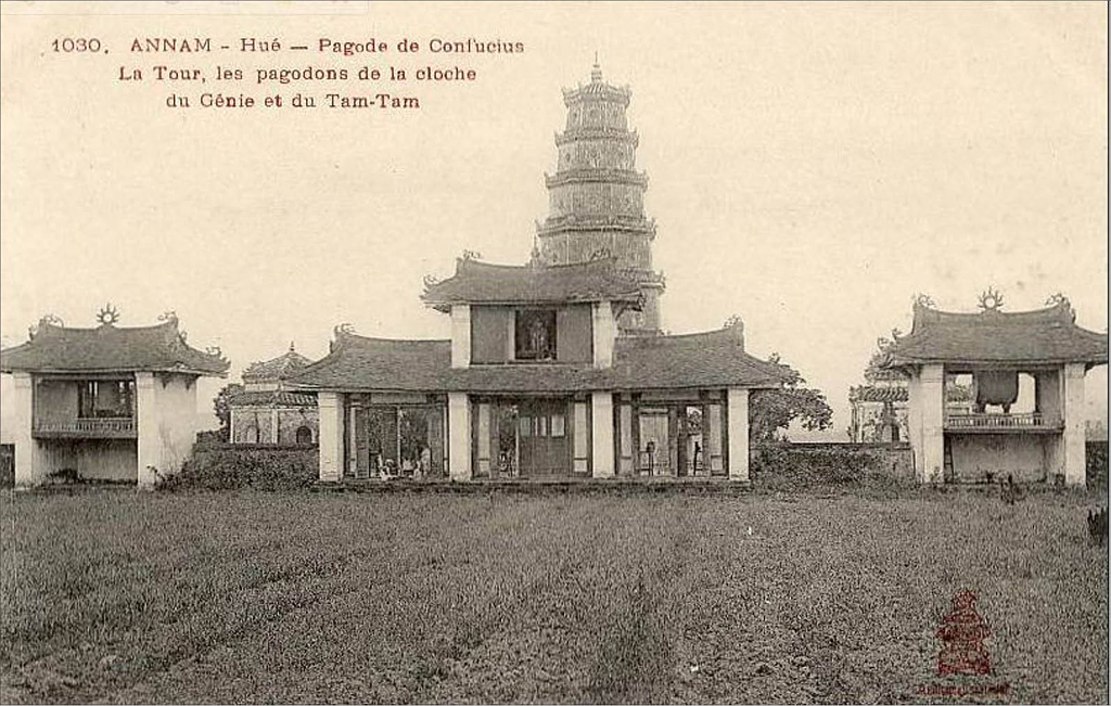 Pièrre Poivre đến Đàng Trong (29/8/1749 - 11/2/ 1750), khi tham quan Thiên Mụ (ngày 13/10/1749) đã cho biết chúa Nguyễn xây dựng nên để thờ các bậc tiên đế. Bên sông Hương, ngôi chùa được xây dựng qui mô, qua khỏi sân rộng là tòa tiền đường nhà rường bằng gỗ, chạm trỗ công phu, để tôn trí các vị hộ pháp. Ngôi nhà thứ hai kế đó cao hơn, trang trí lộng lẫy hơn, trên bàn thờ có thiết trí thần vị nhà vua vừa băng hà (Túc Tông Hiếu Ninh Hoàng đế), phía sau có bảy khám thờ thần vị các bậc tiên đế họ Nguyễn. Riêng tầng khám cuối cùng được trang trí chạm trỗ, sơn son thếp vàng theo dạng thức mô tả điển tích dựng nghiệp của bậc tiên đế sáng lập triều đại (Triệu tổ tĩnh Hoàng đế) (Henri Cordier, 1887, "Voyage de Pierre Poivre en Cochinchine”, Revue de l'Extrême-Orient, tập 3, số 1, tr.17).