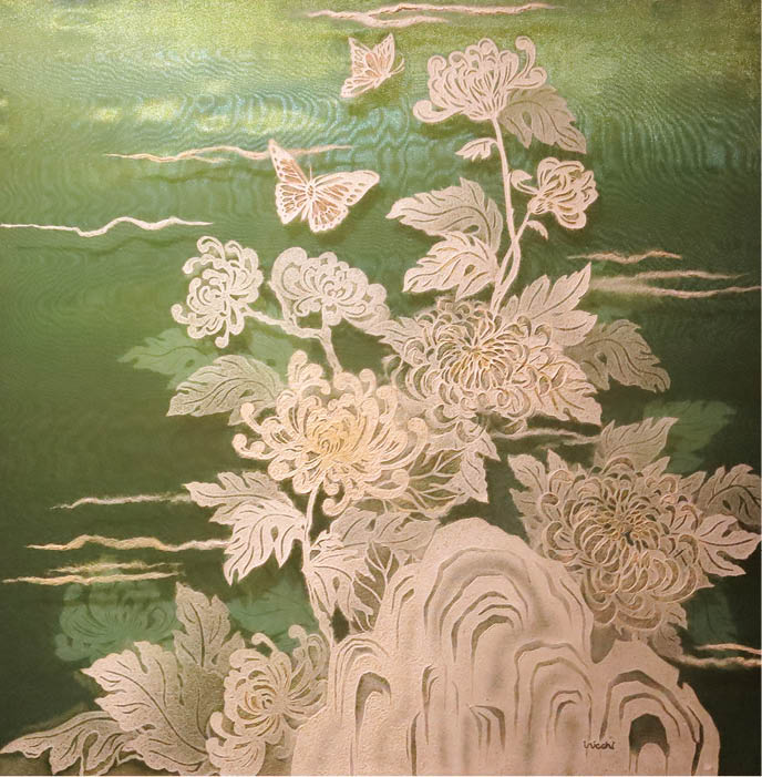 Tác phẩm “Thu sang” của họa sĩ Trần Quốc Duẫn, một tác phẩm được ứng dụng kỹ thuật mới không cần đèn