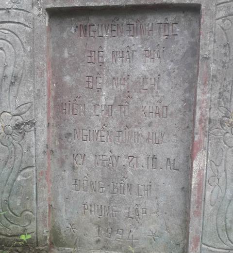 Bia mộ cụ Nguyễn Đình Huy được con cháu tạo dựng năm 1994