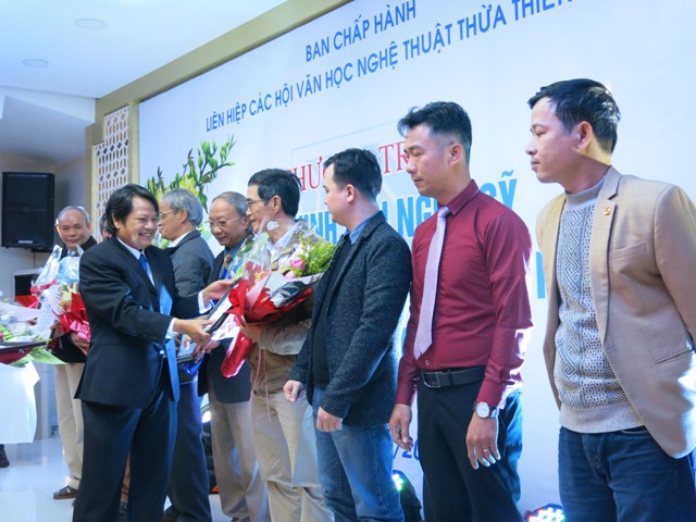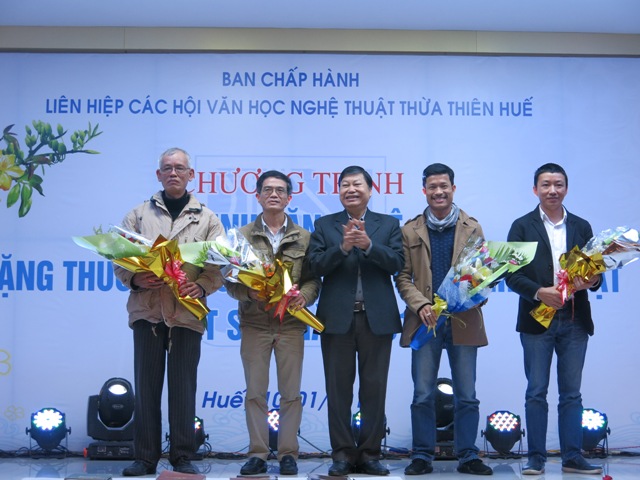 Dịp này, Liên hiệp các Hội VHNT tôn vinh 17 văn nghệ sĩ đã có những tác phẩm đạt giải thưởng trong nước và quốc tế thuộc Hội Nhiếp ảnh, Hội Văn nghệ dân gian, Hội Nghệ sĩ Múa và Hội Kiến trúc. Đồng thời, trao tặng thưởng cho 14 tác phẩm, công trình xuất sắc, gồm: Tập thơ “A Lưới đồng bào mình” của Phạm Nguyên Tường, tập thơ “Nghi lễ thụ phấn” của Trần Tịnh Yên, tập ký “Sống thời bao cấp” của Ngô Minh, ca khúc “Nắng Trường Tiền” của Mai Ánh…