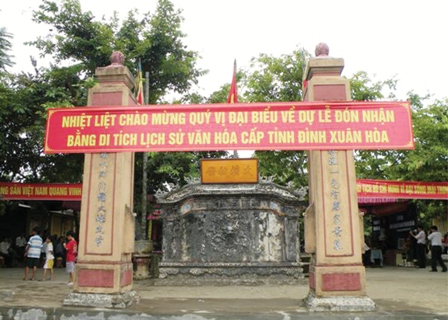 Câu đối ở hai trụ biểu giữa của đình làng Xuân Hòa