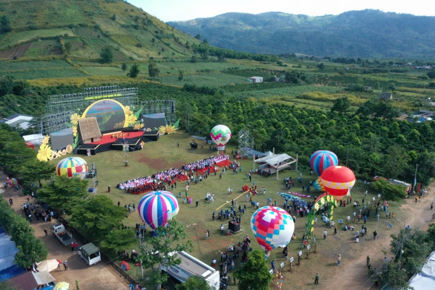 “Nơi chúng ta đứng đây cùng chào đón Tuần lễ Hoa dã quỳ là nhà rông làng Ia Gri dưới chân ngọn Chư Đang Ya-miệng núi lửa đã ngưng hoạt động hàng triệu năm và vết tích để lại là cảnh quan hùng vỹ chìm đắm trong mây, xanh mướt màu cây lá vào mùa xuân, rực đỏ hoa dong riềng vào mùa hạ và nhuộm sắc vàng dã quỳ vào chớm đông (…).