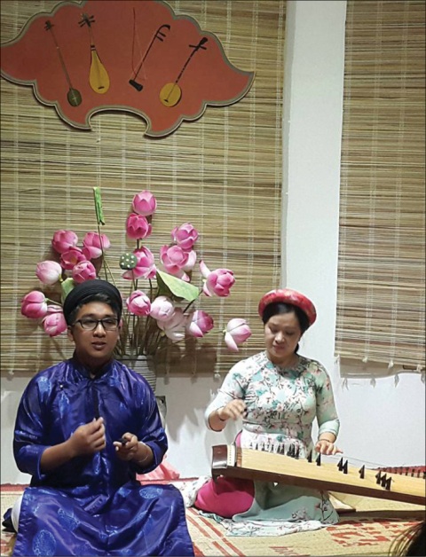 Lần theo chỉ đường của chú bảo vệ, chúng tôi tìm đến căn phòng sẽ diễn ra buổi biểu diễn ca Huế trong 10 phút tới. Vừa mới tới cửa đã có bác lớn tuổi chào cười: “Hai cháu mới đến lần đầu à, vào đây ngồi nghe ca Huế cho biết”.