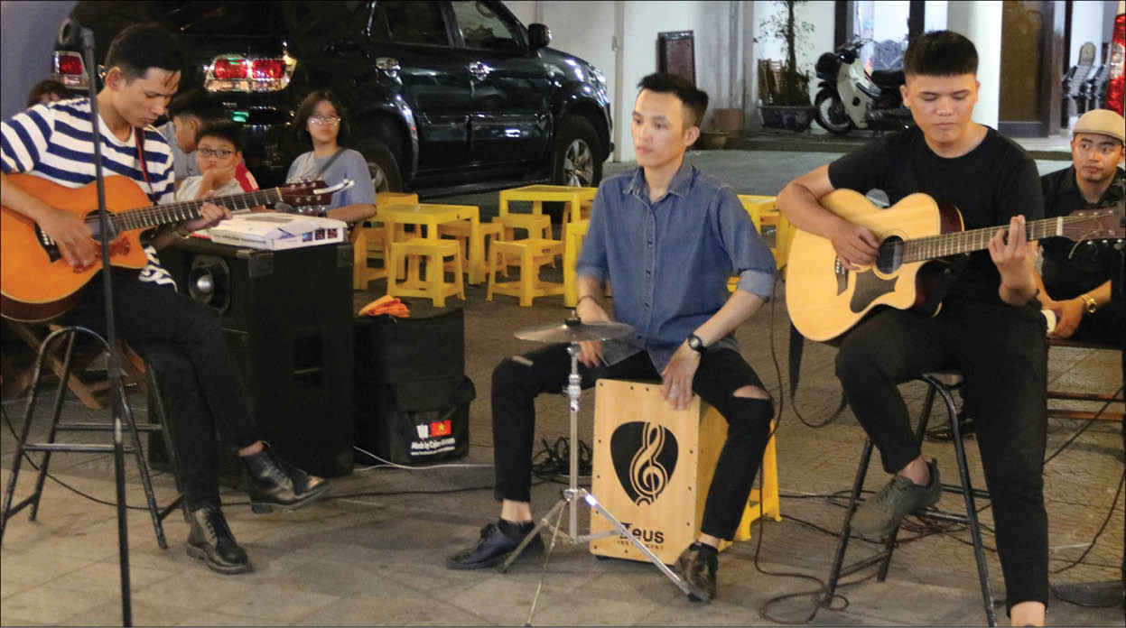Flash Band biểu diễn ở phố đi bộ Phạm Ngũ Lão - Chu Văn An - Võ Thị Sáu. Ảnh: HỮU PHÚC