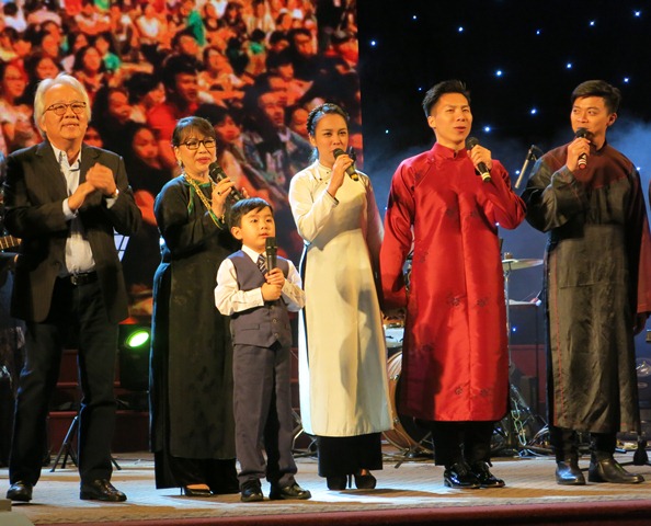 Evan Lê chững chạc khi cùng hát "Nối vòng tay lớn" với các ca sĩ, nghệ sĩ