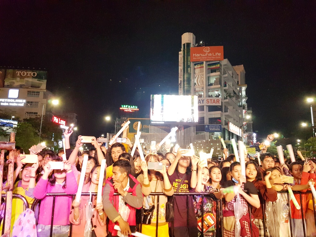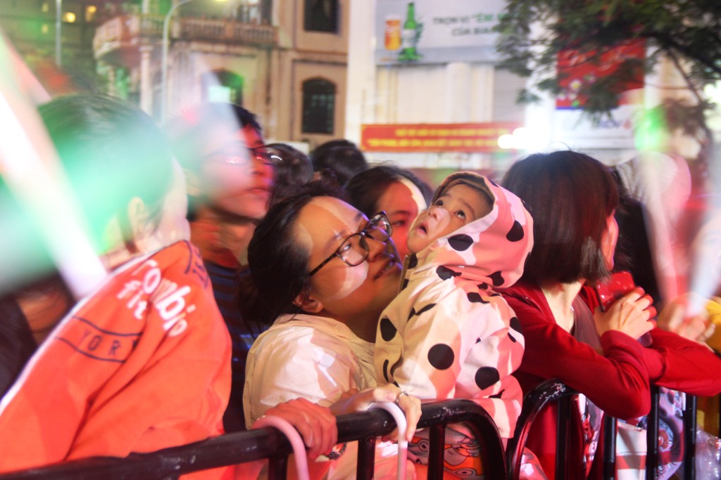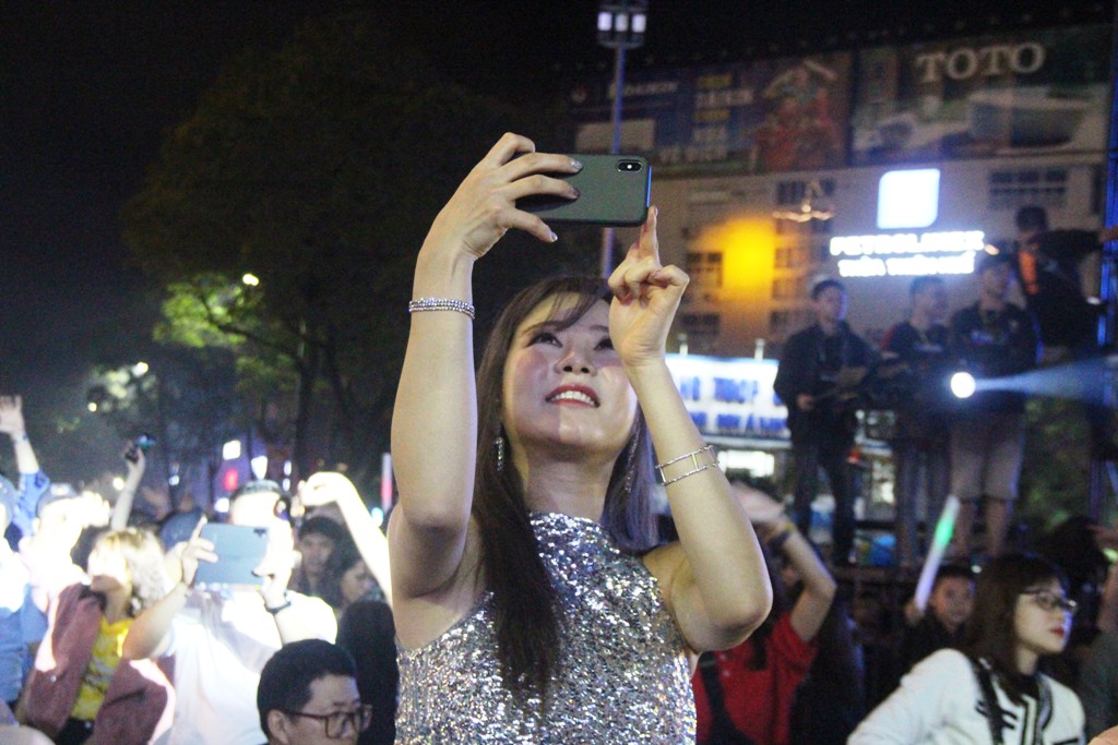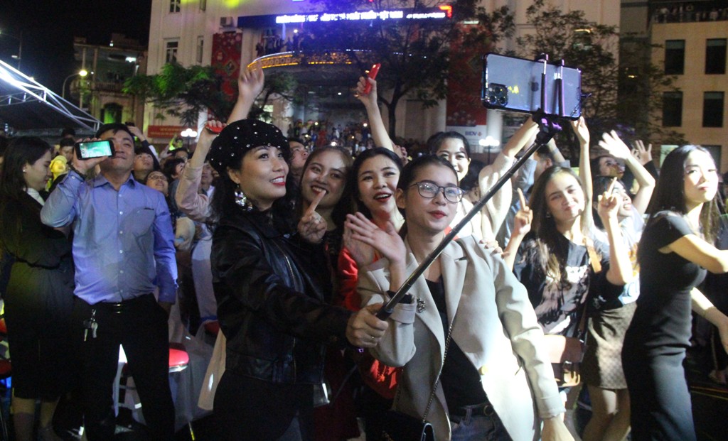 “Đại tiệc” âm thanh, ánh sáng chương trình chào đón năm mới được bắt đầu từ khá sớm, với sự góp mặt của các nghệ sỹ trong và ngoài nước. Càng về khuya, dòng người càng đông đúc, chật kín một không gian rộng lớn cùng tiếng reo hò tươi vui, sôi động.