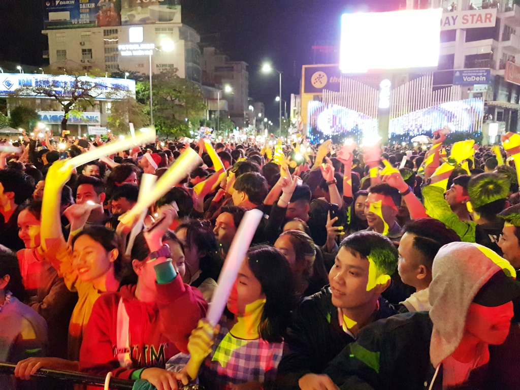 Ngày sau lời chúc ấy, những điệu nhạc chào đón năm mới sôi động được cất lên với những vòng tay múa theo điệu nhạc. Đúng lúc đó, giờ khắc đếm ngược bắt đầu, hàng ngàn người cùng đếm: 10, 9, 8,...1…0. Và một năm mới đã đến trong tiếng hô vang của biển người hân hoan.