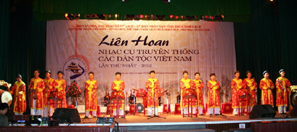 HNN.VN - Tối 5/6, Liên hoan nhạc cụ truyền thống các dân tộc Việt Nam lần thứ nhất - 2012 do Cục Nghệ thuật biểu diễn (Bộ Văn hóa, Thể thao & Du lịch), Hội Nhạc sỹ Việt Nam và UBND tỉnh phối hợp tổ chức đã khai mạc tại Trung tâm văn hóa TP Huế. Đây là sự kiện nằm trong khuôn khổ Năm Du lịch quốc gia duyên hải Bắc Trung Bộ - Huế 2012.