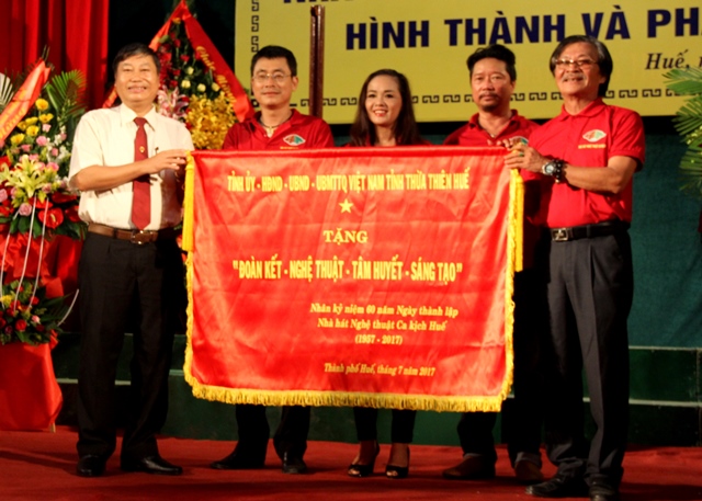 Dịp này, Tỉnh ủy – HĐND – UBND – UBMTTQ Việt Nam tỉnh tặng Nhà hát NTCK Huế bức trướng: “Đoàn kết – Nghệ thuật – Tâm huyết – Sáng tạo”.