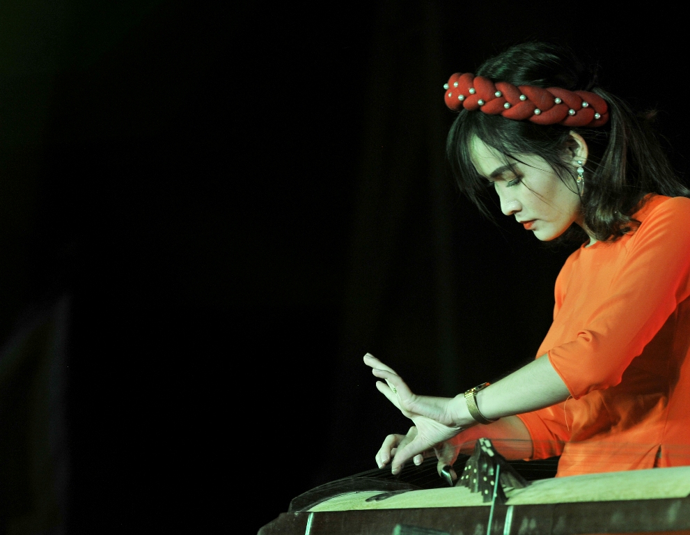 Hoài Diễn - giáo viên mầm non đến từ xã Hương Phú gây ấn tượng qua độc tấu đàn tranh "Sang xuân" ở phần thi tài năng