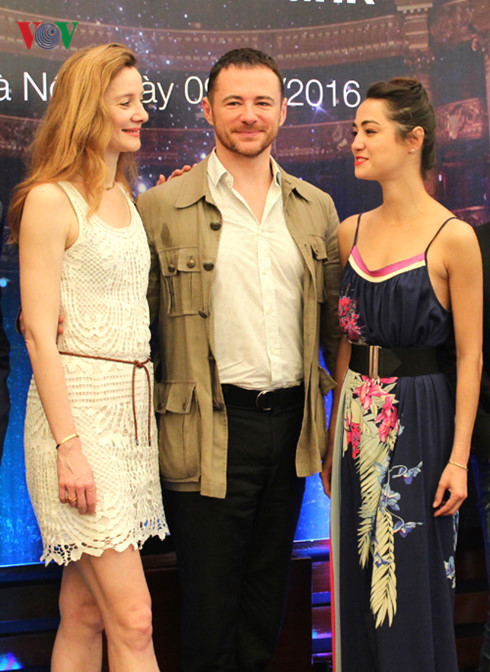 Từ trái qua:“Quý bà nổi danh của Opéra de Paris” Agnès Letestu, Ông Jean Noel Poirier- Đại sứ Pháp tại Việt Nam, Ông Frederic Fontan- Giám đốc nghệ thuật "Paris Ballet", “Cô bé Pháp” Mathilde Froustey