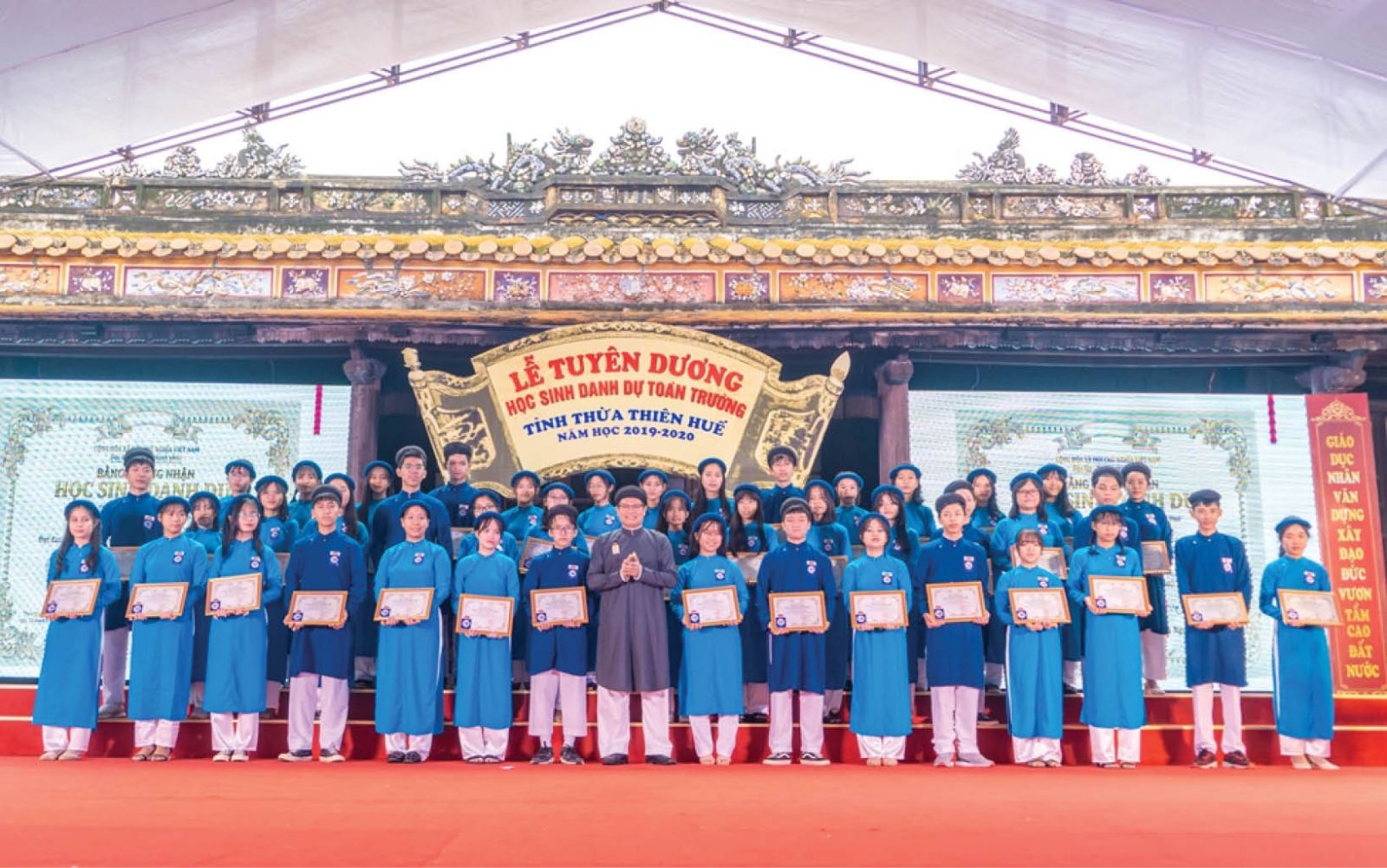 Học sinh mặc áo dài trong lễ tuyên dương học sinh danh dự toàn trường