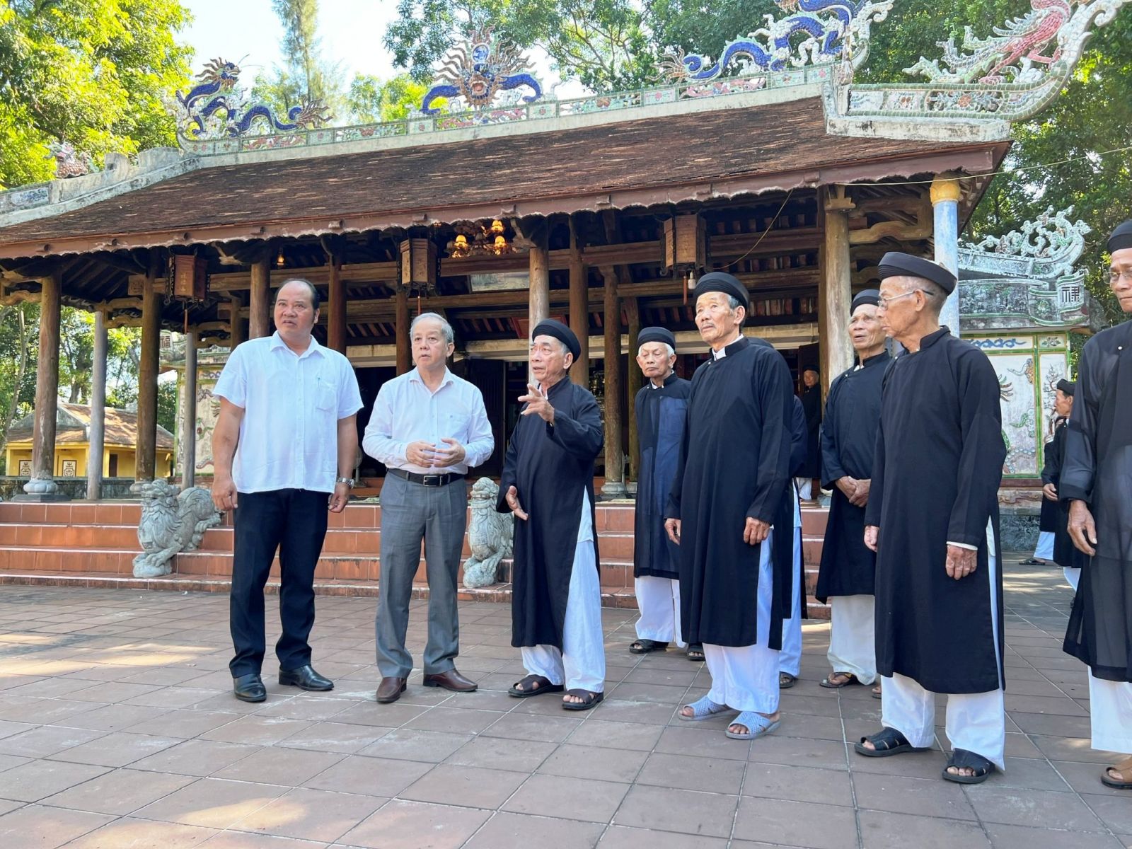 Cùng đi có đại diện lãnh đạo Văn phòng Tỉnh ủy, Ban Tuyên giáo Tỉnh ủy, Sở Văn hóa - Thể thao, huyện Phú Lộc và xã Vinh Mỹ.