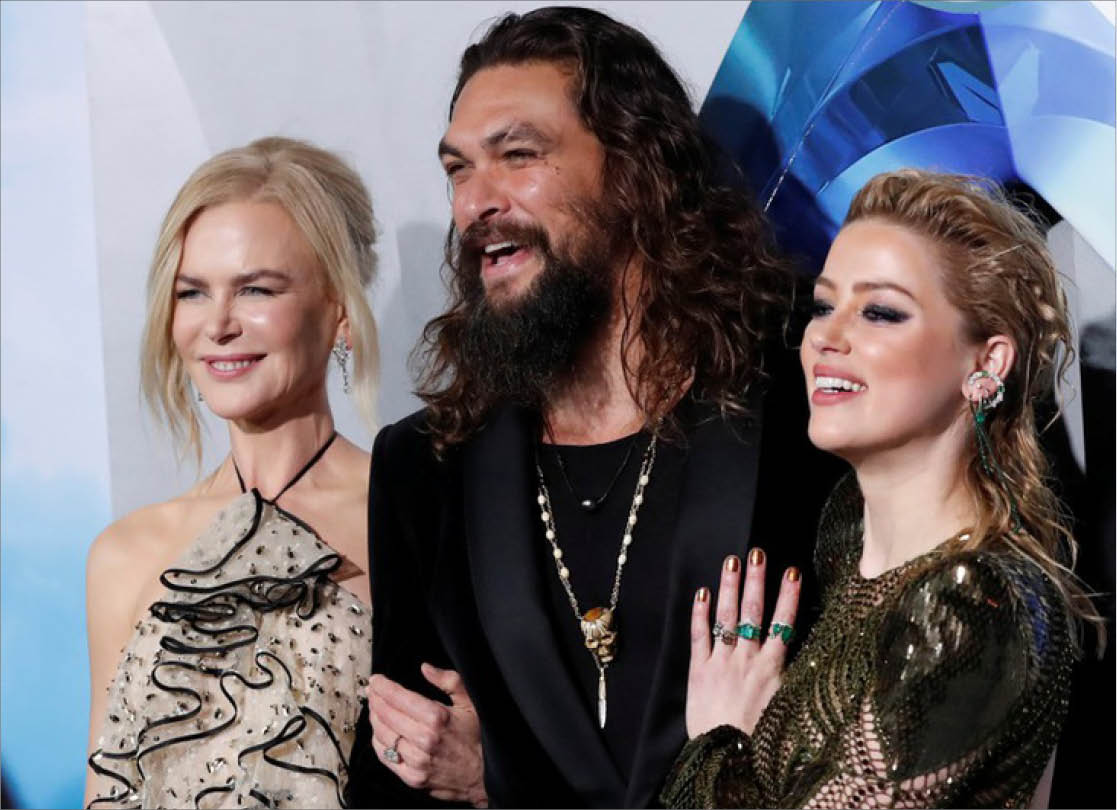 Diễn viên Jason Momoa (ở giữa) tại buổi ra mắt bom tấn “Aquaman: Đế vương Atlantis” ở Los Angeles, California, Mỹ. Ảnh: Reuters