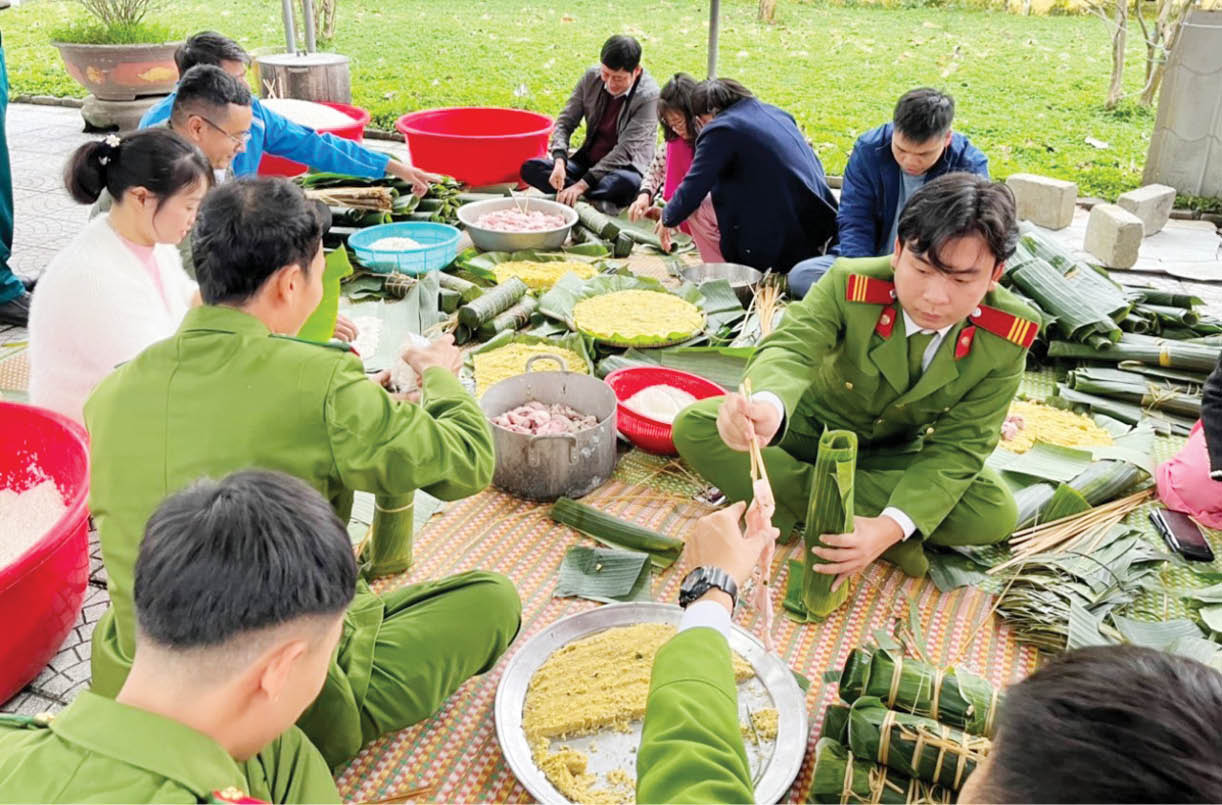 Hội thi gói bánh chưng, bánh tét nằm trong chương trình "Tết Đoàn kết" ở phường Hương Sơ