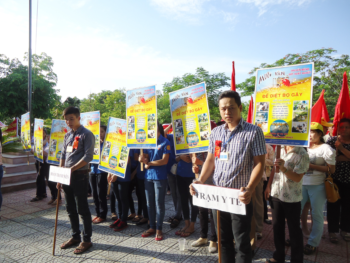 Sau lễ phát động, đông đảo cán bộ, sinh viên, đoàn viên đã tuần hành trên các tuyến đường TP Huế tuyên truyền mọi người dân tích cực tham gia phòng, chống SXH.