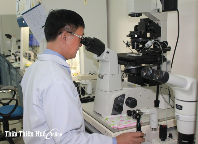 TS. Nguyễn Văn Thuận thực hiện lấy nhân và chuyển nhân tế bào tạo phôi nhân bản vô tính (Ảnh nhân vật cung cấp)