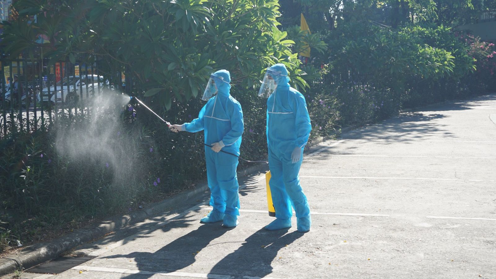 Bệnh viện Trung ương Huế phun khử khuẩn không gian bệnh viện