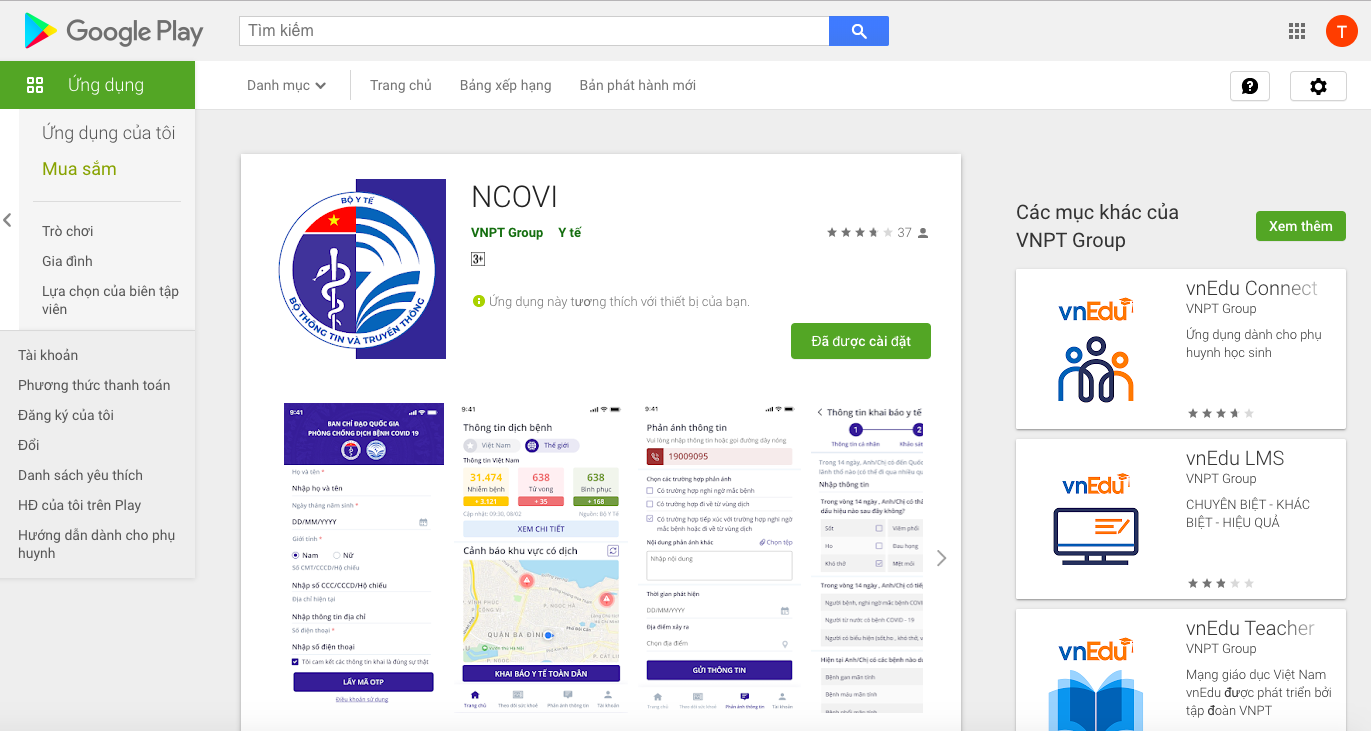 Giao diện của ứng dụng này kho ứng dụng của Google.