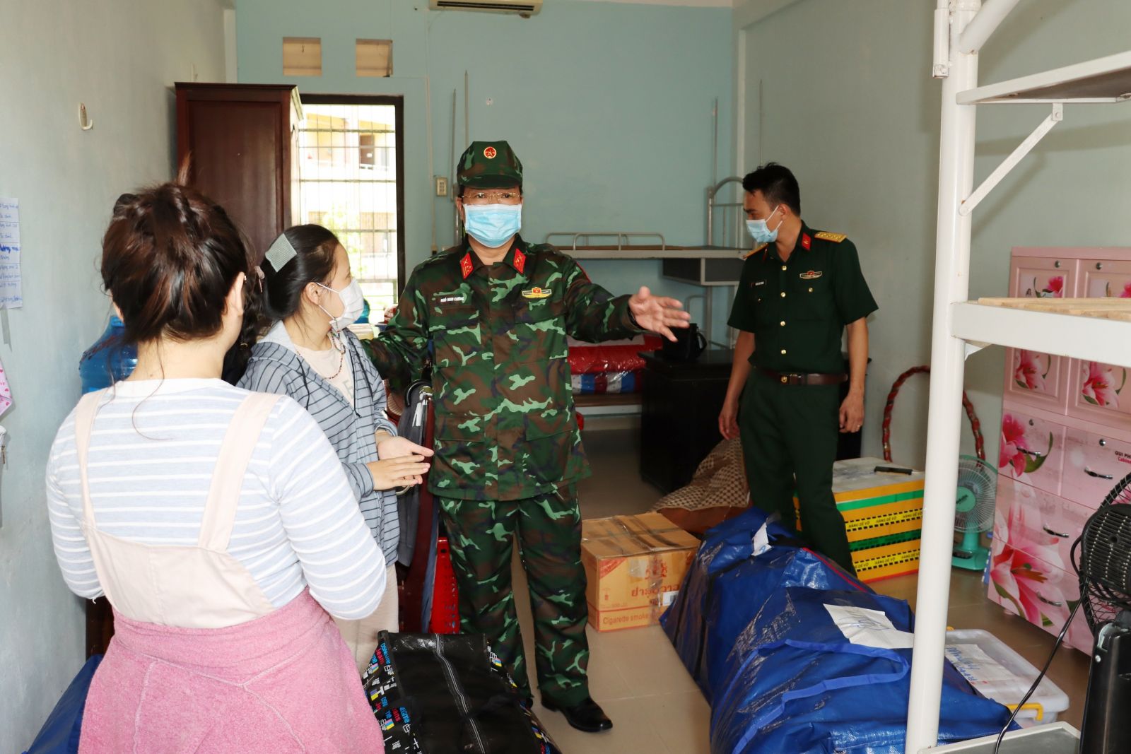 Thượng tá Ngô Nam Cường, Chỉ huy trưởng Bộ Chỉ huy Quân sự tỉnh kiểm tra công tác chuẩn bị cơ sở cách ly đón công dân về từ TP. Hồ Chí Minh