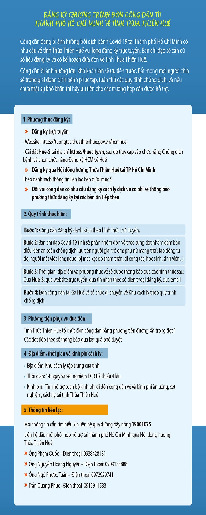 Hướng dẫn của Ban Chỉ đạo phòng chống dịch COVID-19 tỉnh về chương trình đón công dân từ TP. Hồ Chí Minh về Thừa Thiên Huế
