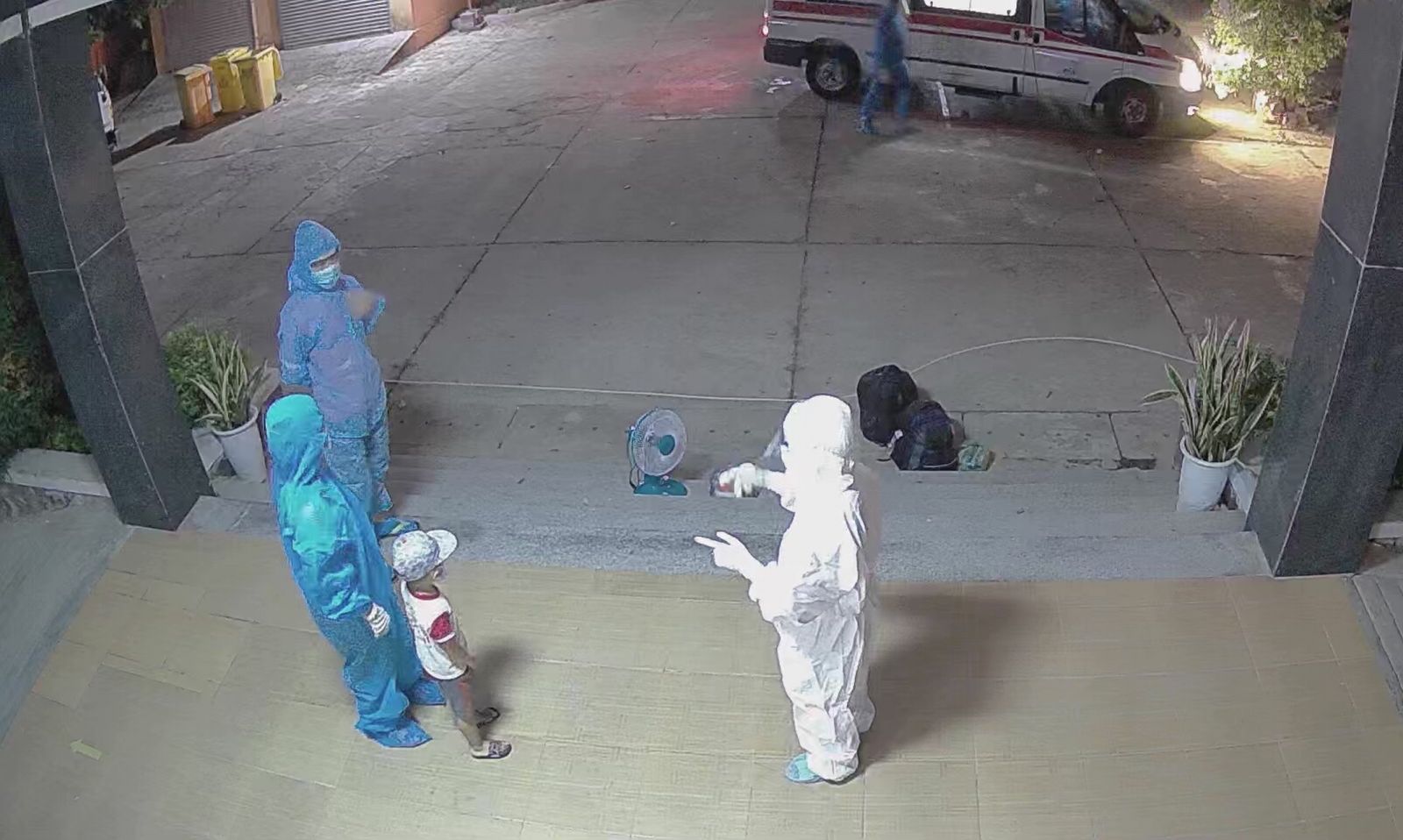 Đón một bệnh nhi F0 vào đêm khuya (ảnh trích xuất camera)