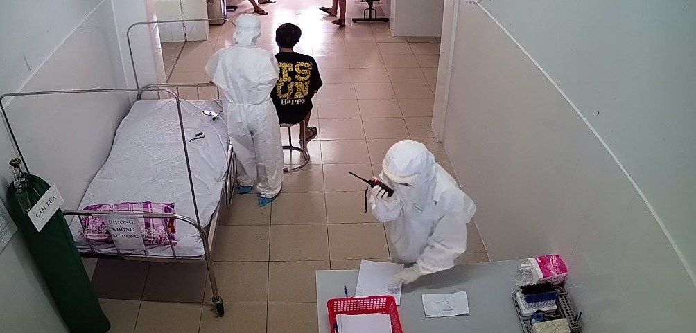 Nhân viên y tế kiểm tra sức khỏe cho một ca bệnh F0 (ảnh trích xuất camera)